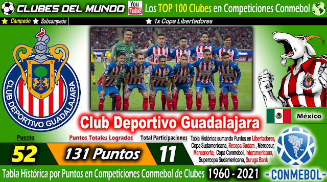 CONMEBOL - Los TOP 100 de la Tabla Histórica por Puntos sumando en Competiciones Conmebol