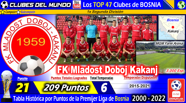 BOSNIA y HERZEGOVINA TOP 47 Clubes según Tabla Histórica de Premijer Liga del 2000 a 2022