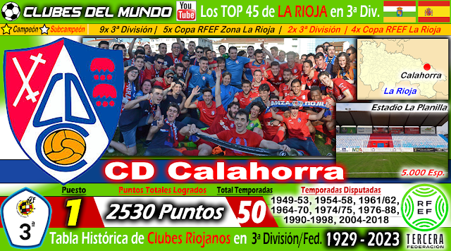 Los TOP 45 Clubes de LA RIOJA según Tabla Histórica de la 3ªDivisión/Federación de 1929 a 2022/23